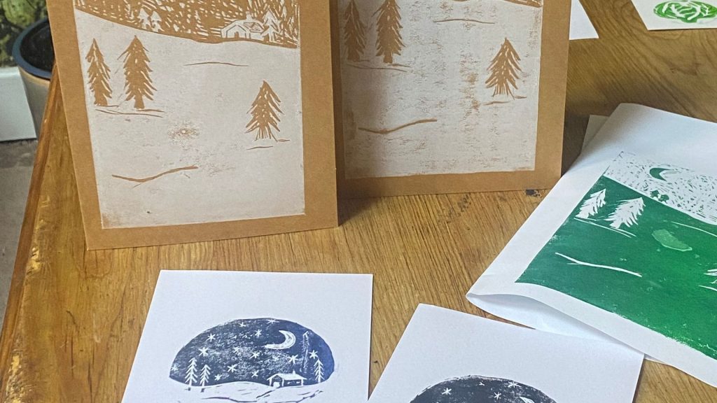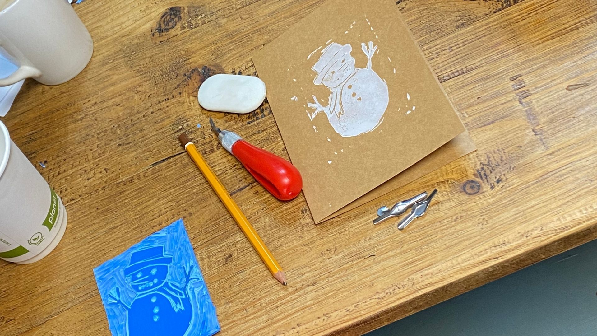 Lino printing is an easy and effective method for creating multiple prints of your own unique design. In this session, you will learn how to cut your own lino printing block and use it to produce Christmas cards, wrapping paper, or pictures.